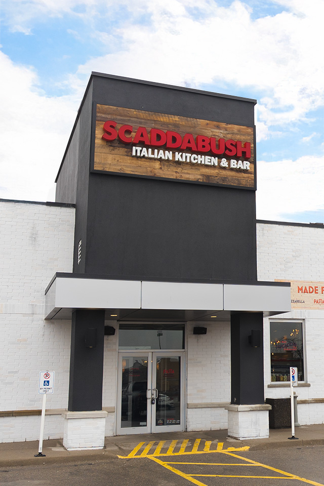 Scaddabush is Italian slang for “a little bit of everything.” And that describes us best – from authentic fresh-made pastas & pizzas, to artisanal cocktails and ½ priced bottles of wine every Wednesday, experience true Italian indulgence at Scaddabush. Join us in restaurant, pick up your favourites to go or let us help you host your next event with our all new-catering menu. We look forward to welcoming you soon.